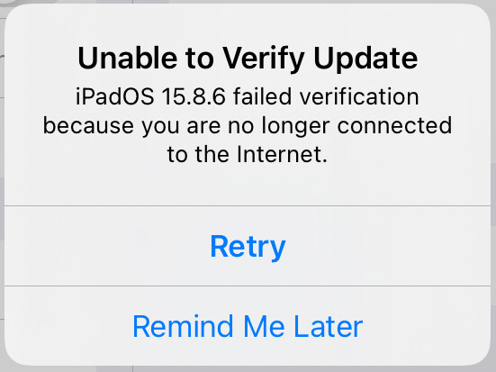 Followup. I just tried again (about 4:30 pm, Eastern time, January 28th), and this time verification didn’t fail. The installation is now proceeding. So it looks like they’ve restored the signing at least for 15.8.6 on a non-cellular iPad Air 2.