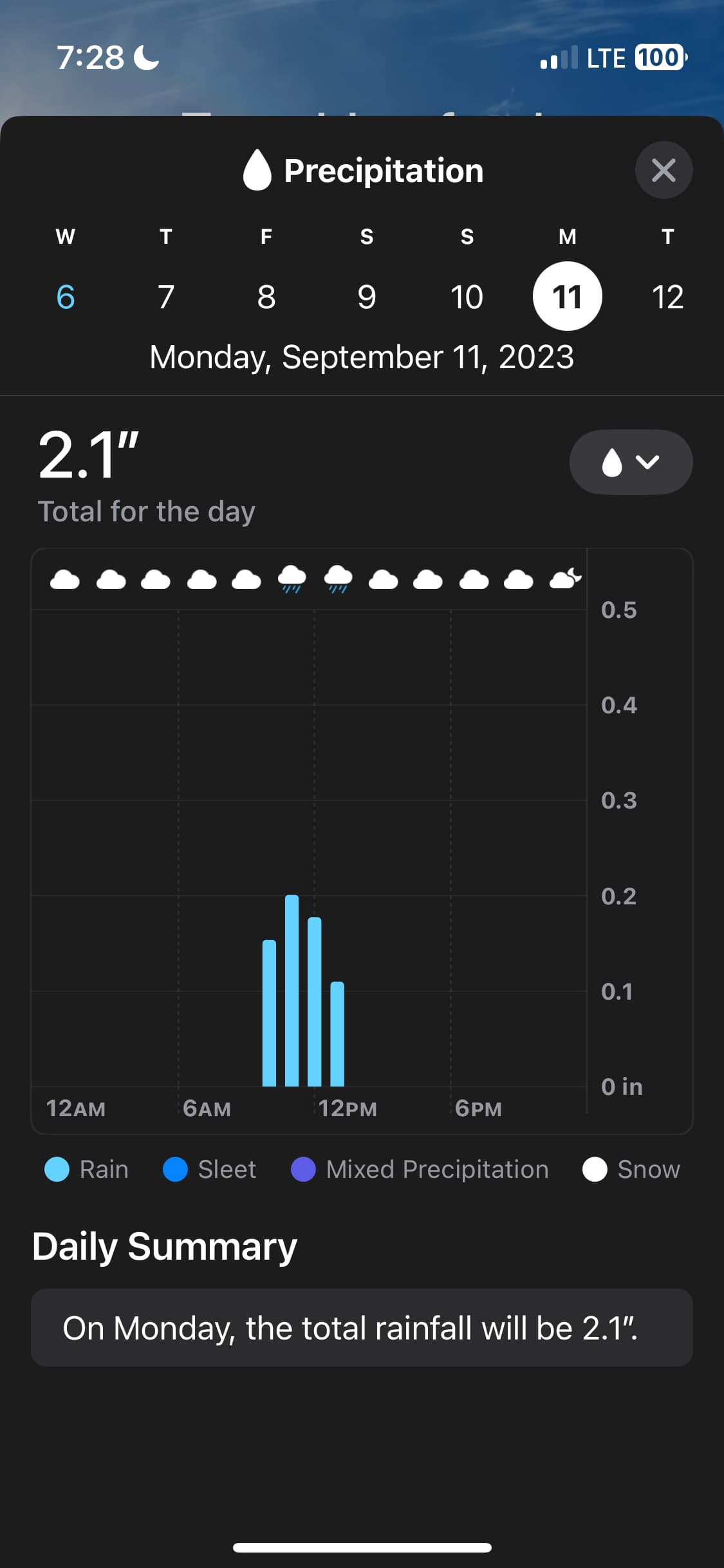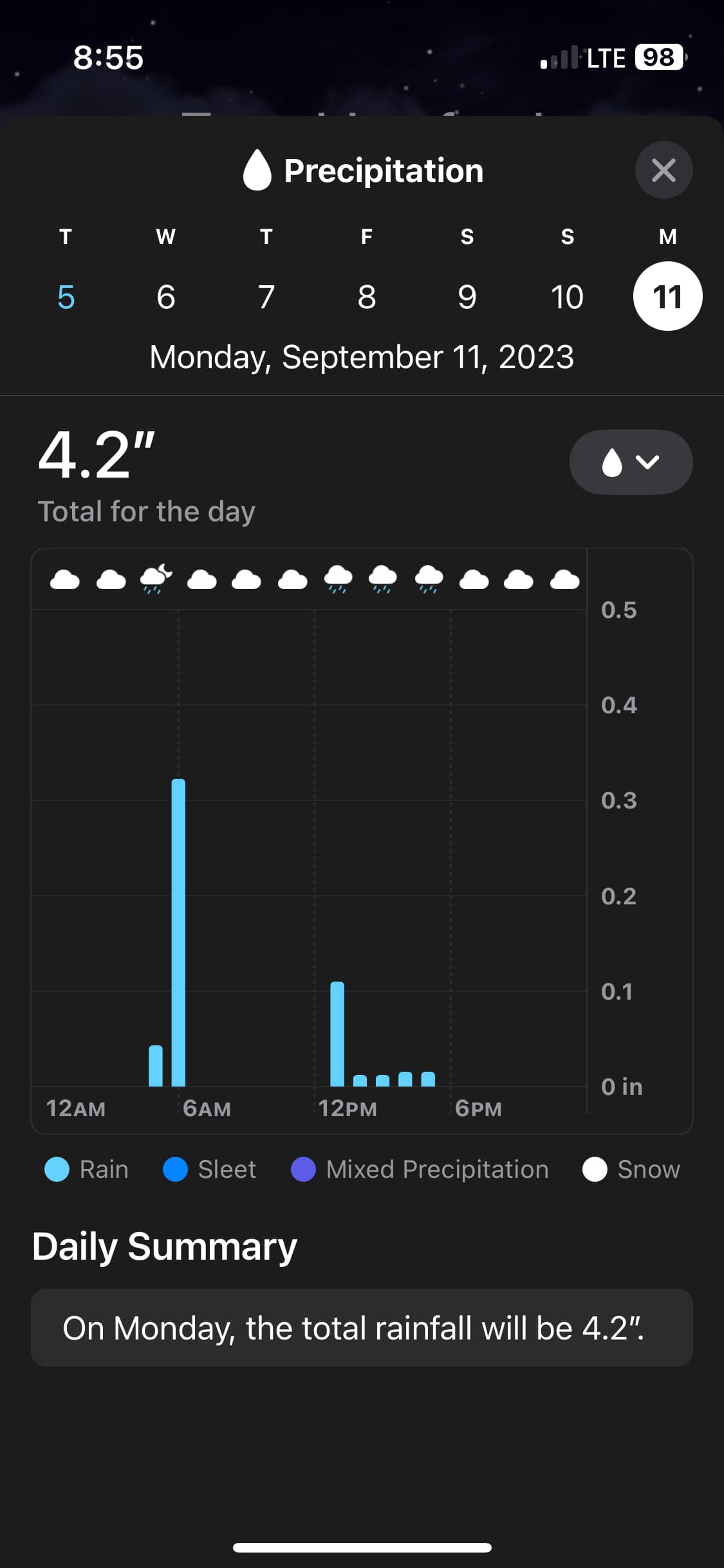 Last night it was showing 4.2" total for Monday but I don’t see how based on the graph. That’s a lot of rain!