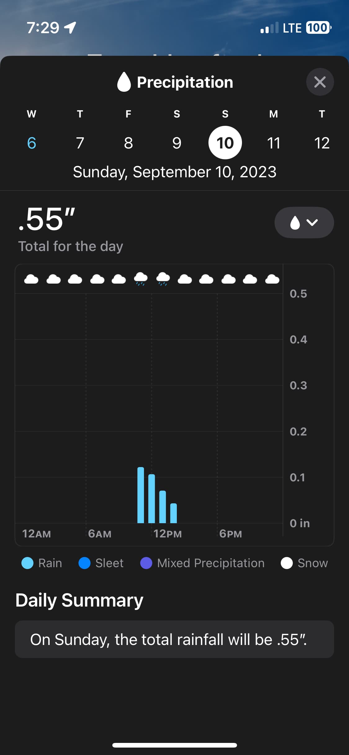 Sunday at .55" makes a little more sense.