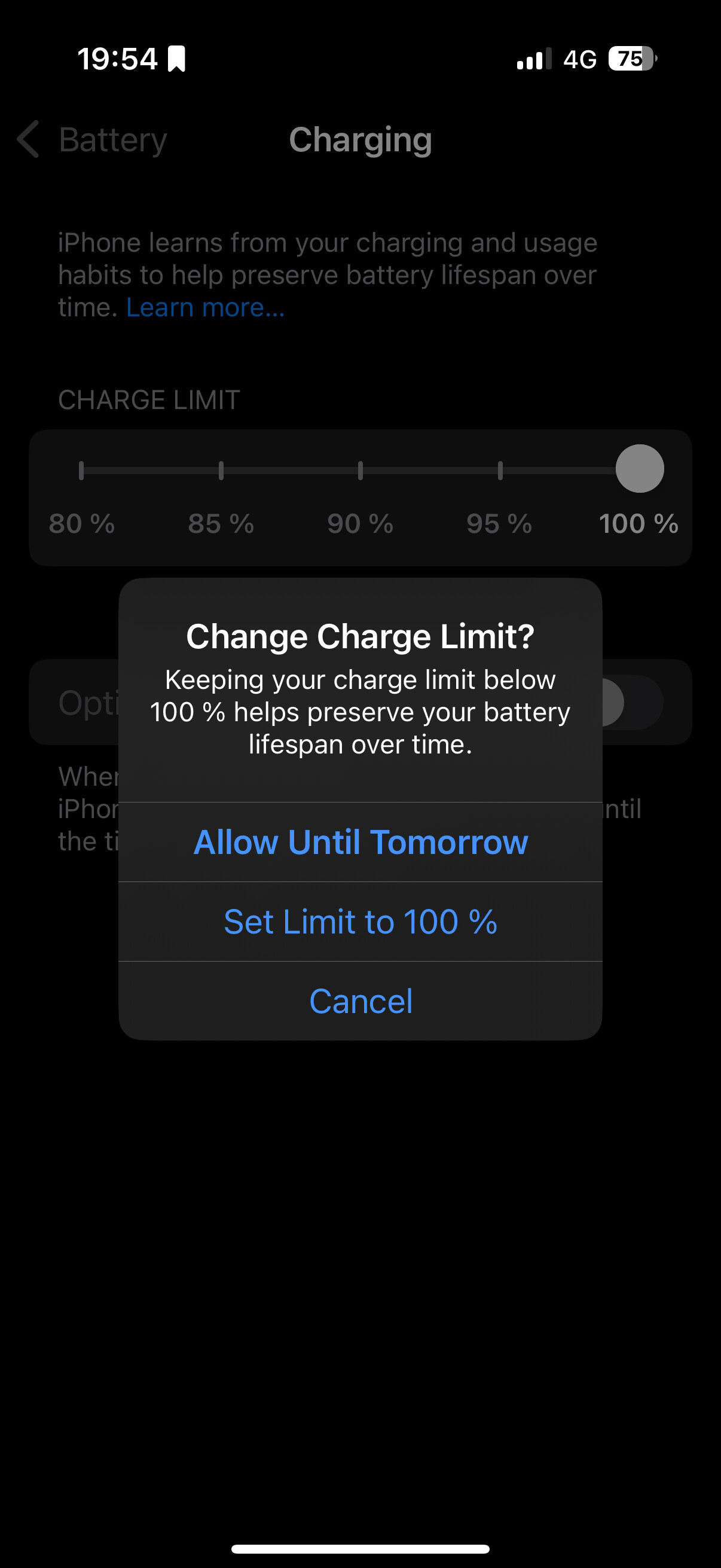 I’ve now switched the 15 Pro charging to 100% charge limit (which includes optimized charging - it holds the charge at 80% during overnight charging and starts full-charge so that it will be fully charged when your normally wake up.)