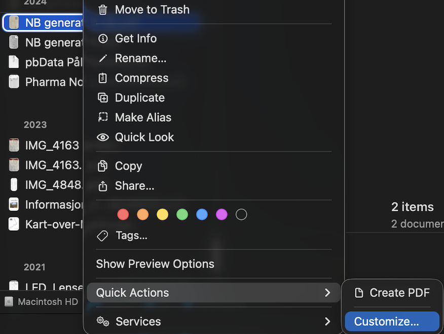 Thank you for the suggestion. Using the quick actions under the contextual menu does work, but the other was easier for him, and I was hoping to be able to make it as simple as possible for him.