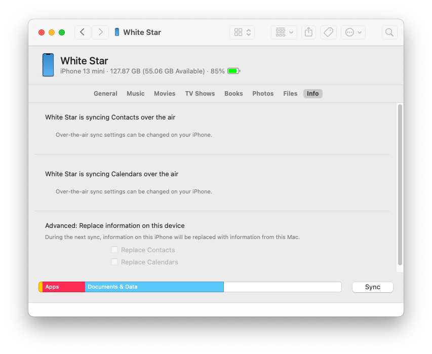 For instance, if you have your iPhone configured to use iCloud for your Contacts or Calendars, then they don’t get sync’ed over USB or Wi-Fi to your Mac: