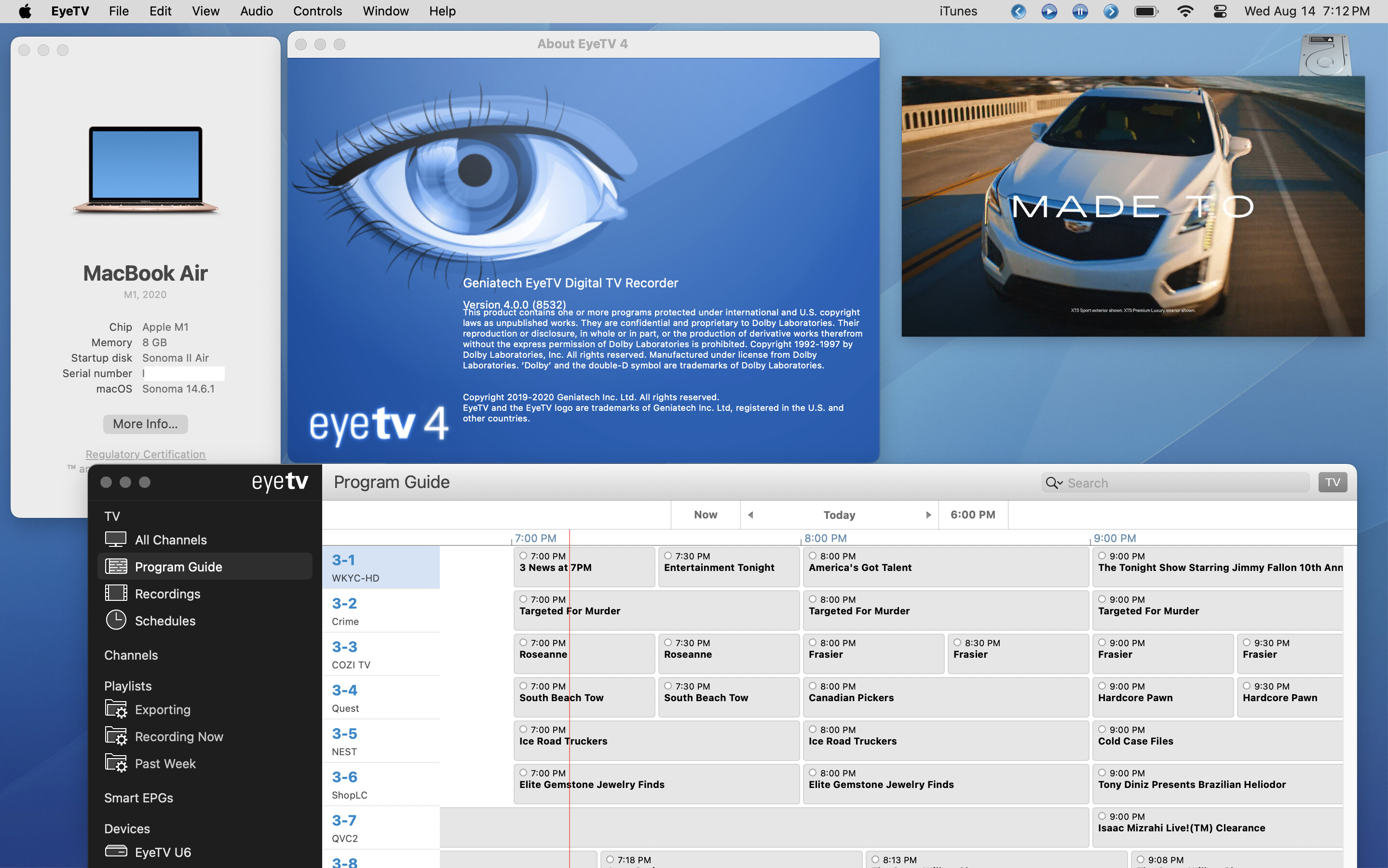 I updated my Sonoma partition to 14.6.1 and tested the Geniatech U6 using the EyeTV4 software (version 8532) and itâs working fine as it did in 14.5 and this is on an M1 Air. I tried the recording function and that works as well.