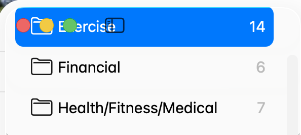 The darker text under stop-light icons; the blue highlight for the currently selected folder, rather than the yellow in mine - your photos look like something is set differently from the default.
