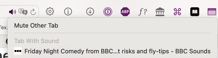 In my Firefox, clicking that chevron shows all the tabs in that particular window. How do I get it to show me what might be the audio playing if it is in a tab in a different window?