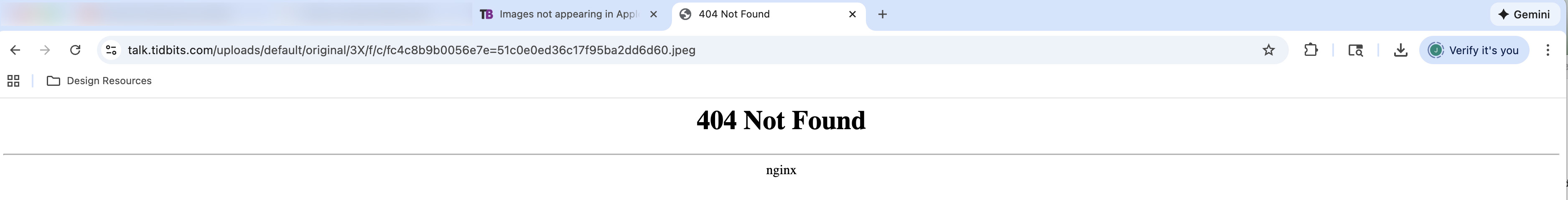 Hmm. Not sure what you mean by ‘resolve?’ but I copied the jpeg URL from the Raw Source message and ended up w a 404 error? I can click on that link in your message (works fine) but pasting the Raw Source gives me the error? Thanks for your help!!