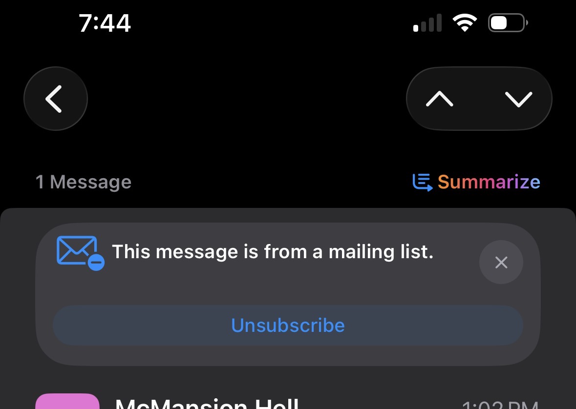 Is this a new thing or did I toggle something on? In iOS and PadOS, I am suddenly seeing a closable dialogue box over all my mailing list mail, using up valuable real estate on my screen. I can close the notification, but that only makes it go away for that mail and not the whole list. I don’t remember the notification taking up so much space, especially on my phone.