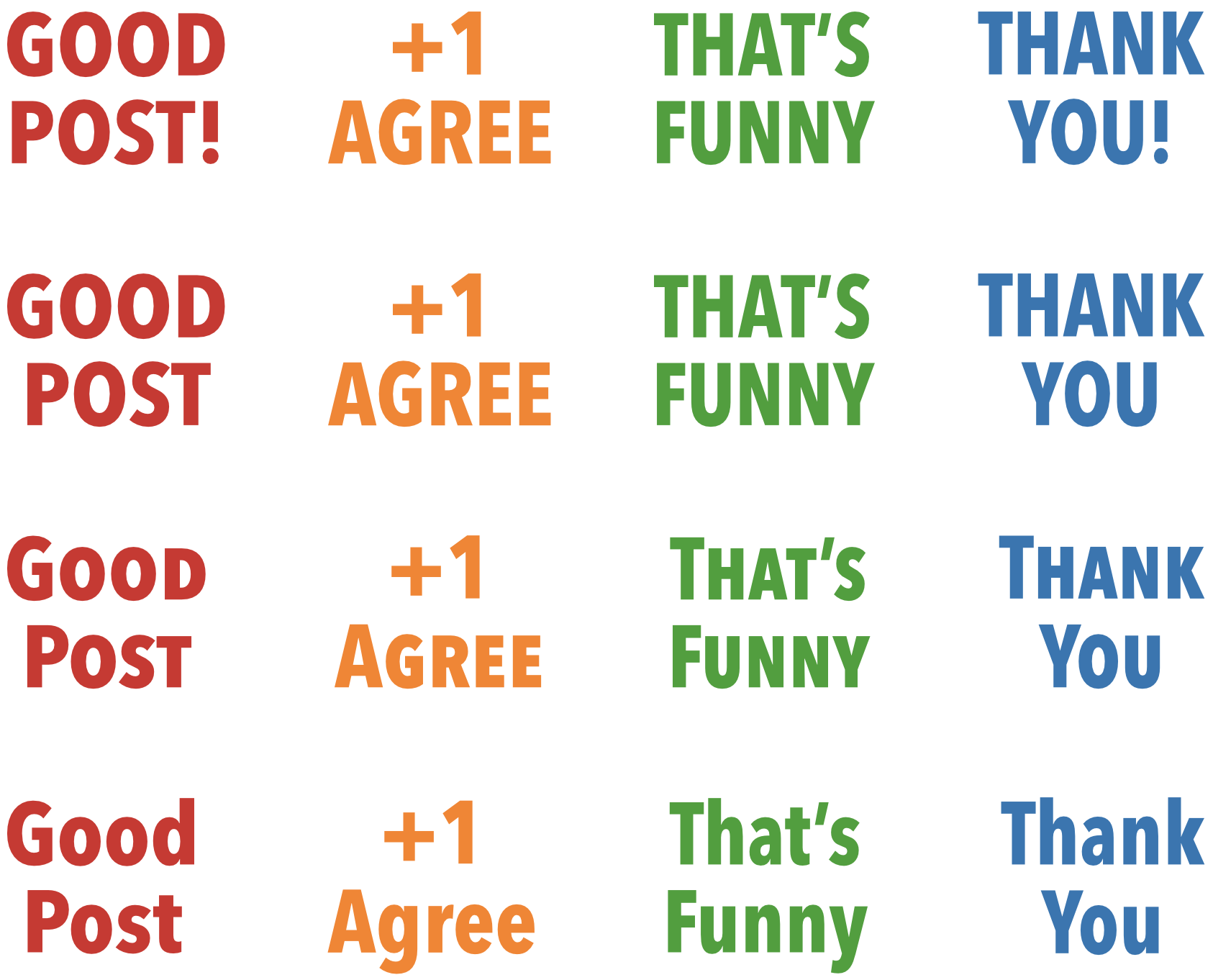 The +1 is not problematic because of two lines or not, it’s IMHO redundant. In my opinion, the present three options are more than enough. Frankly, the more I see how they are used, the less I see value in having them at all. Perhaps the only one I’d retain is thank you because it encourages good manners and politeness while at the same time also saving threads from being cluttered up with thank-you posts. The +1 and thumbs-down and all those mannerisms imported from social media, in my experience mostly encourage tribalism which I do not see as offering any benefit to a board like this.