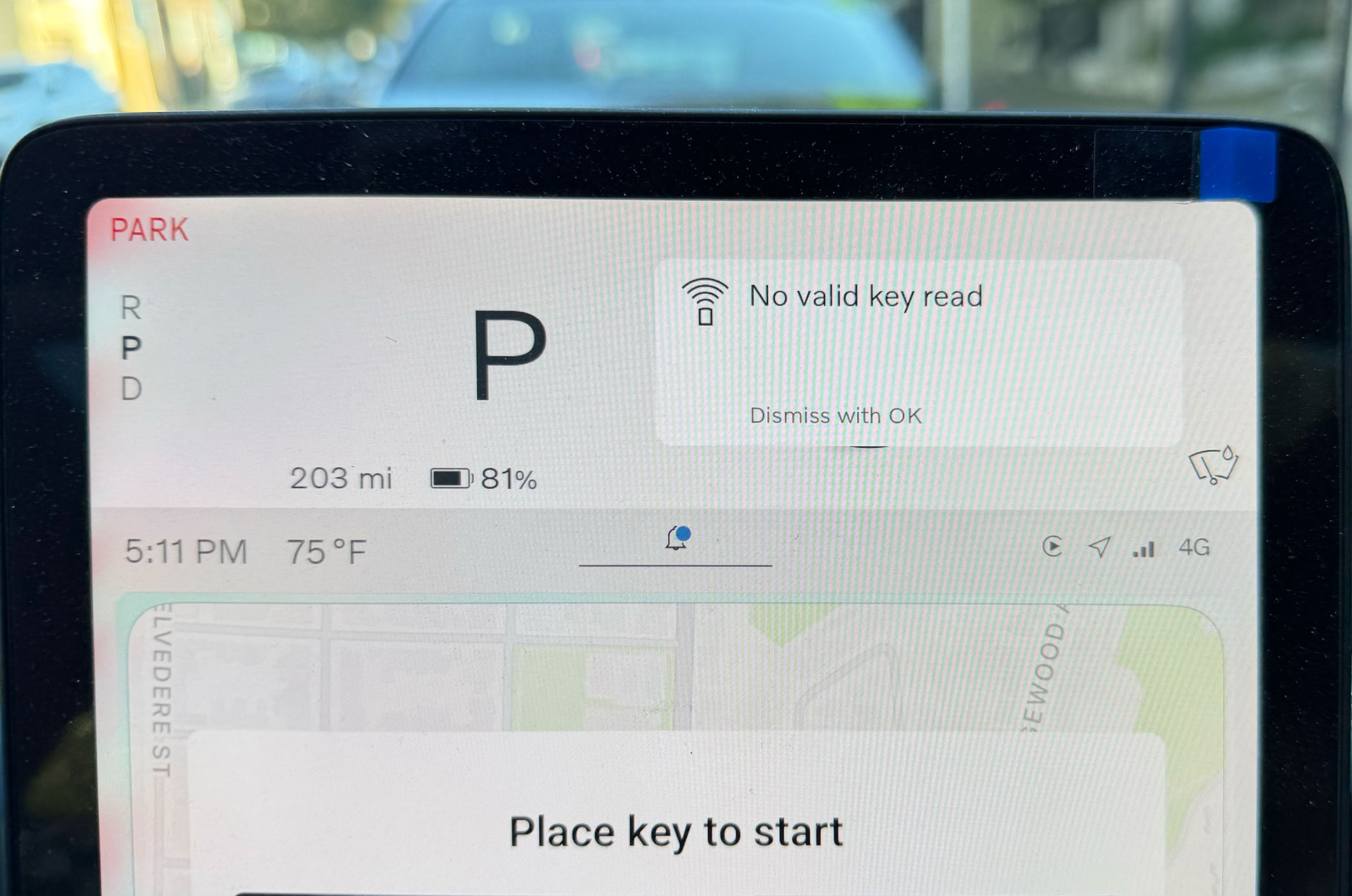Twice I have been unable to drive home, after I unlocked the car with iPhone and put it into drive, only to be confronted with this alert on the display panel: No valid key read