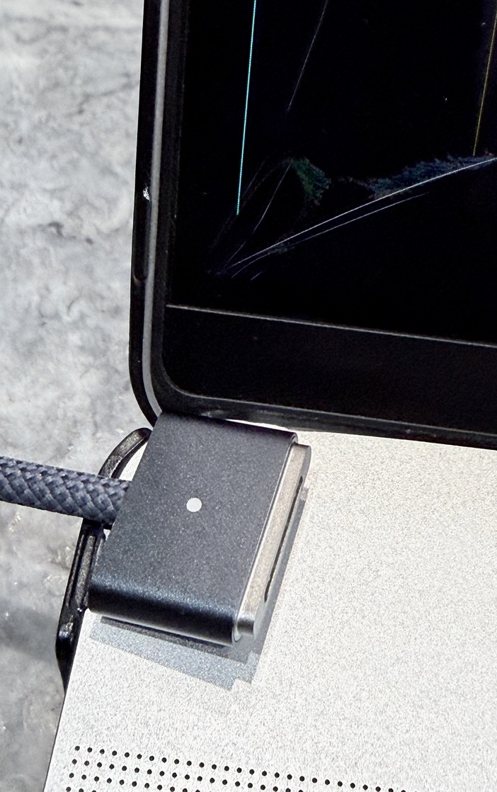 Funny–I wonder if this is a case where USB charging is “safer” than MagSafe charging. To unplug a USB-C charging cable, you have to pull it away from the laptop, so it’s unlikely to end up sitting in the troublesome spot. And there’s no way for it to get accidentally bumped from the bottom and disconnected in a way that would put it on top of the computer body.
