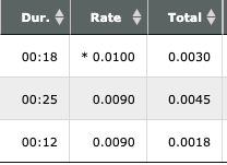 The call rate for incoming calls is $0.009 per minute and for outgoing calls $0.01 per minute. They do it in fractions of a minute, so, for example, you can see for an 18 second outgoing call I made the cost was just $0.003.