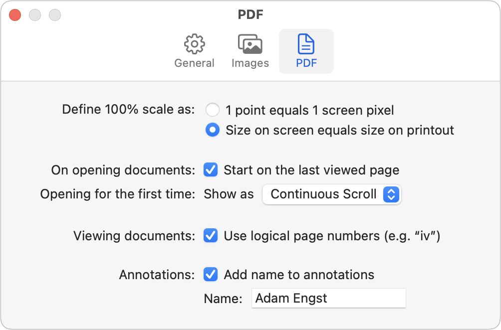 If I open a PDF in Preview and I expand the parent window, Preview will automatically enlarge the image to fill the larger window, if I’m doing this on my MBP’s built-in display.