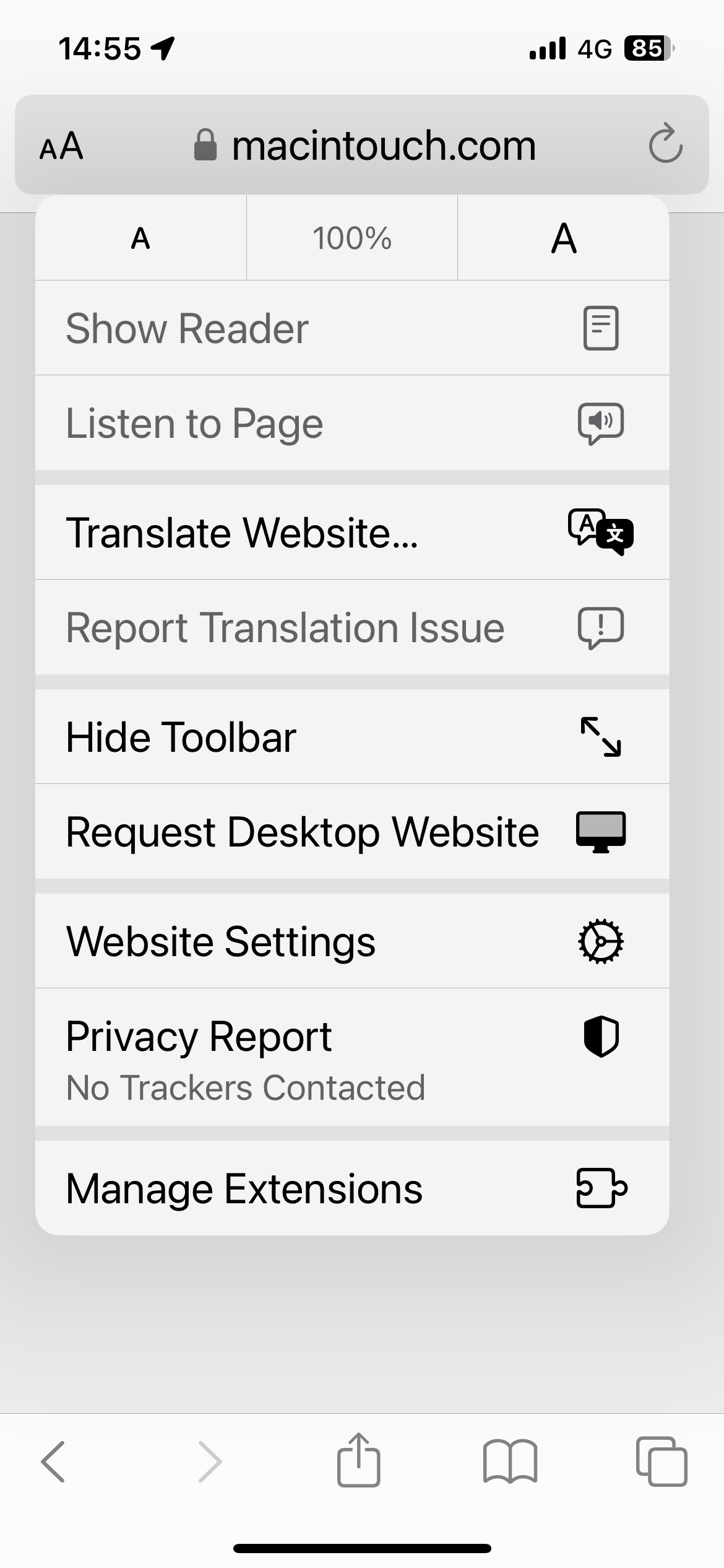 All browsers on the iPhone use Apple’s WebKit, so it’s no wonder they have the same issue. I was able to open Ric’s website by tapping the ‘aA’ symbol to the left of the URL and selecting 'Show IP Address", which effectively overrides the anonymity portion of iCloud Private Relay.