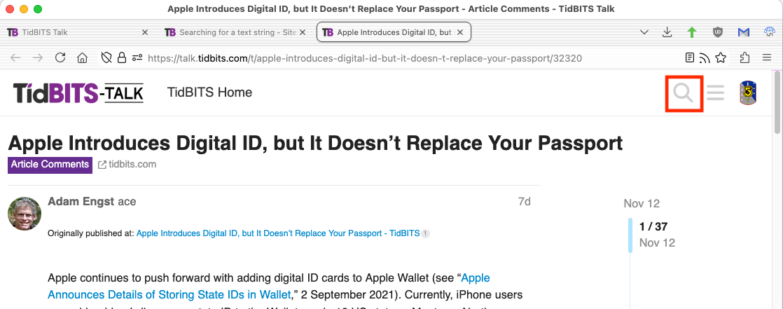 Using the Discourse search button (the magnifying glass icon in the upper-right corner) is better than your browser’s search function, because it will search the entire thread.