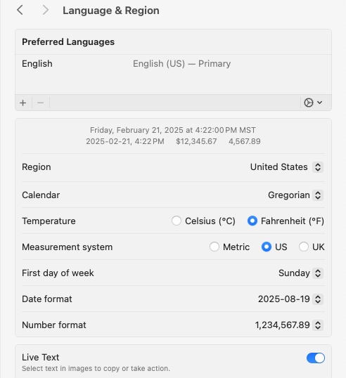 For me, the date (no matter which one) is showing as Feb 23, 2025 (example, using today). And that is the way it is "formatted’ in Settings. Seems fine to me.