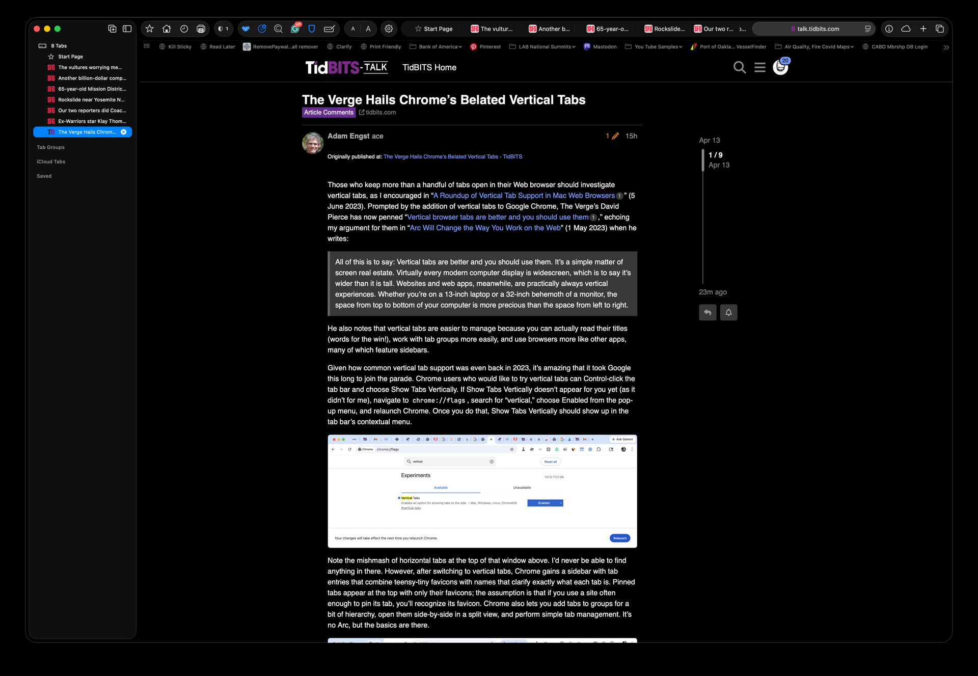 Originally published at: The Verge Hails Chrome’s Belated Vertical Tabs - TidBITS