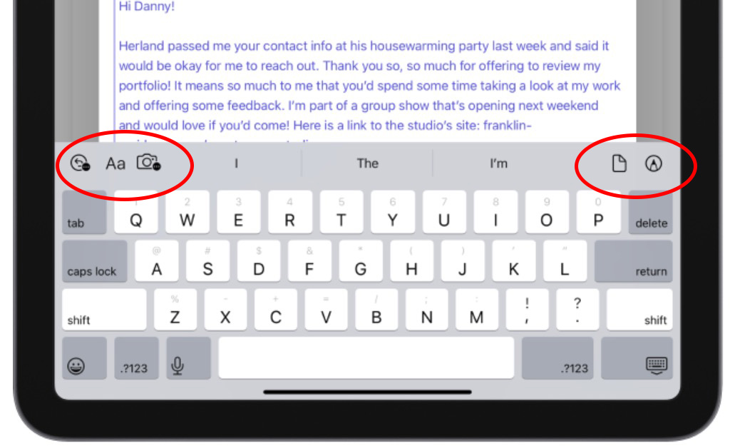 Strange but true: as I start to type a reply (on my iPhone SE), I do not see those buttons if I start with my iPhone in portrait mode. They do appear when I turn the iPhone to landscape mode – and stay there, above the keyboard, when I turn it back to portrait mode.