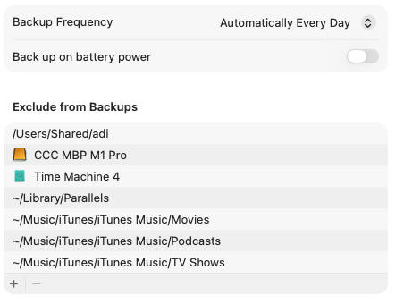 I used to have Time Machine set to update every hour. But over the past couple of years it seemed to be running all the time if I did that. So I changed it to run once a day. I think it takes about 3 hours to finish an update. I just triggered another backup so I’ll see how long that takes.