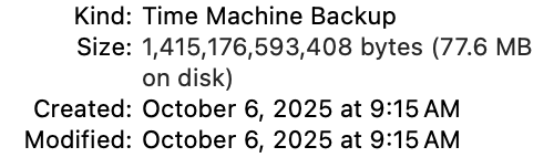 Successfully completed backing up 666 MB to '/Volumes/.timemachine/3B5AA177-B31B-4AF6-AE89-96F69A2BE834/2025-10-07-155204.backup/2025-10-07-155204.backup'