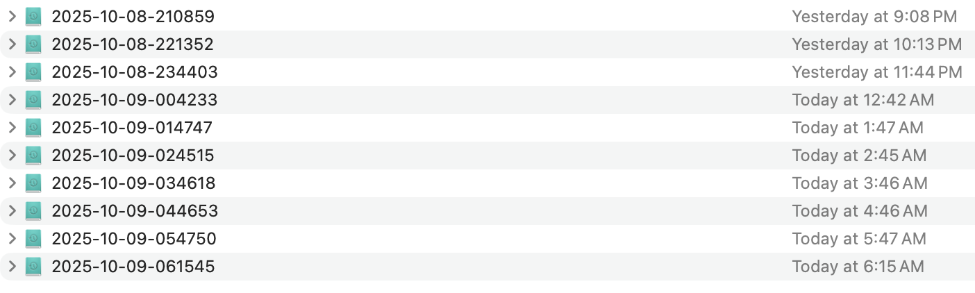 I’ve spent probably way too much time over the years just getting attuned to the various vagaries of my Time Machine setups and how things have changed with the various versions of macOS. My current issue with Tahoe is that when I leave the machine idle, after the screen locks it will only continue backing up each hour to one of the 2 available destinations - either the directly connected SSD or the networked one attached to another Mac in the house. Before Tahoe it used to nicely cycle back and forth between them every hour, and it still does that during the day as I am actively using the computer. But as soon as the screen locks, after that it’ll only do one of the other.